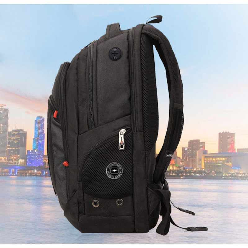 Отделение для ноутбука имеет отдельный карман на молнии. Он расположен прямо за спиной, имеет мягкие амортизирующие стенки для максимальной защиты вашего гаджета при транспортировке. Большое отделение в которое поместиться объемный багаж. Отделение для документов формата А4 с органайзером. Карман на фронтальной части. Боковые карманы. |