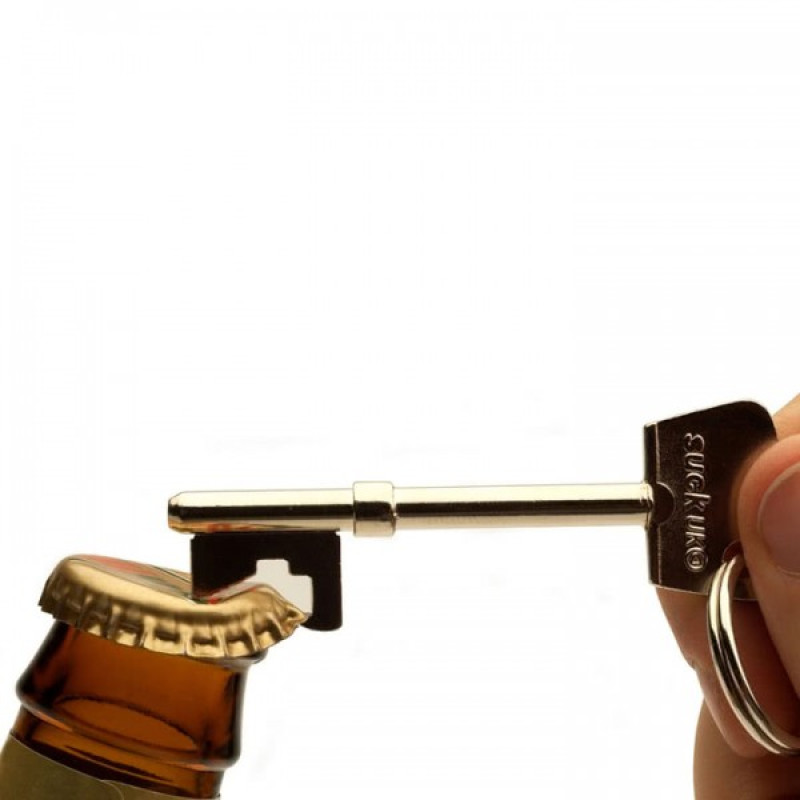 Для любителей хмельного напитка и других он станет незаменимым спутником. Приспособление для вскрытия жестяных пробок и аксессуар для ключей умело соединены. Выглядит изделие как ключ от старого платяного шкафа. |