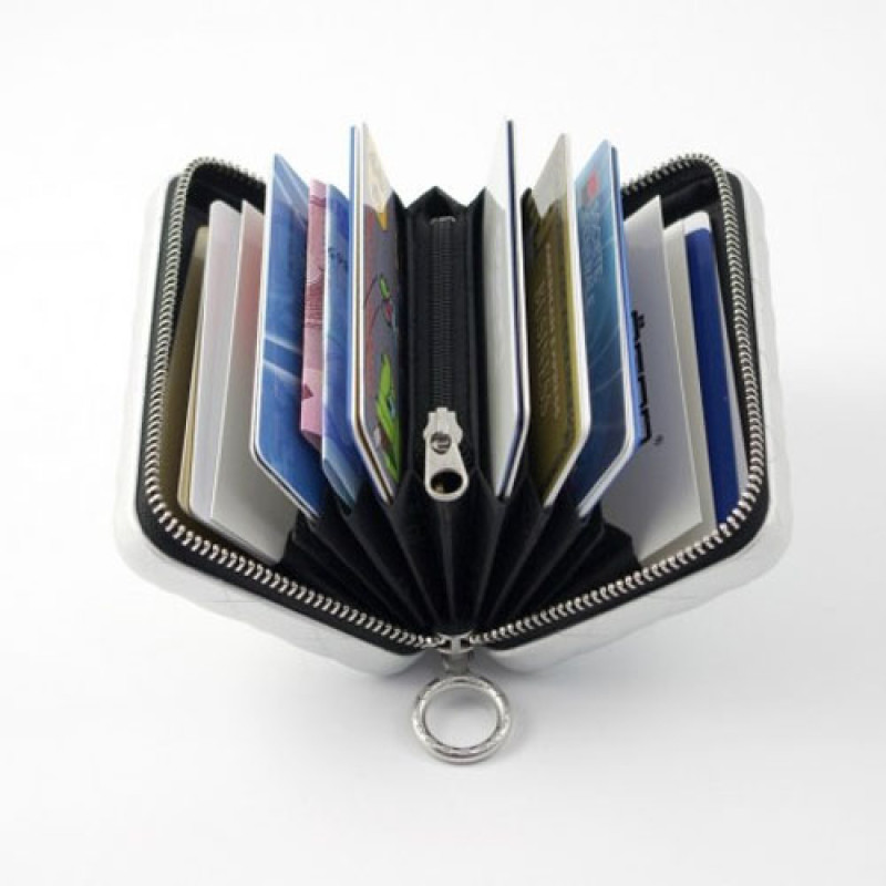 Описание товара: | Бумажник на молнии с RFID защитой Quilted zipper черный с отделением на 24 карточки и бумажных купюр. Визитница выполнена из анодированного алюминия, внутри текстиль, материал легкий и не ржавеет. Портмоне абсолютно не пропускает влагу и не боится падений. Кошелек с RFID-защитой, ваши карточки защищены от считывания и размагничивания. |