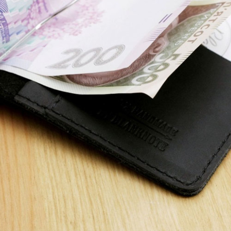 Удобное черное портмоне с зажимом для денег имеет множество кармашков для пластиковых карточек и небольших записок-бумажек! Так что это не просто зажим для денег, а полноценное портмоне. Подходит для любых купюр, в том числе - для евро и долларов.