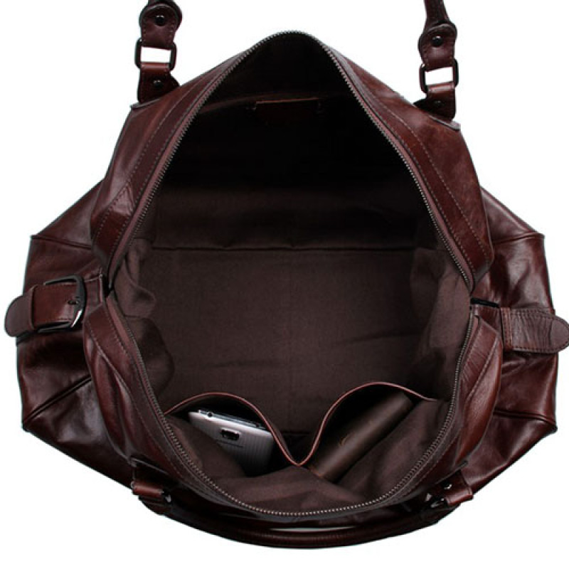 Дорожная сумка для комфортных путешествий. Сумка выполнена из натуральной винтажной кожи кофейного цвета. В сумке одно большое отделение, внутри органайзер и накладной карман на молнии. В комплекте ремень на плече - регулируется по длине.