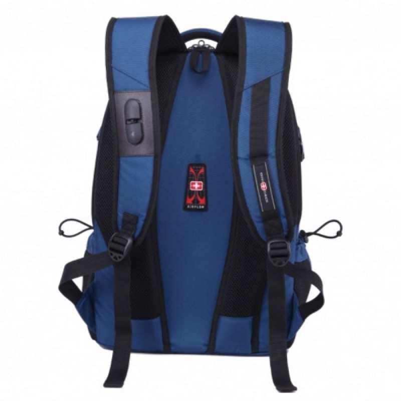 Эргономичный городской рюкзак из водонепроницаемого прочного нейлона синего цвета. В рюкзаке специальное отделение для ноутбука, конструкция которого максимально защищает ноутбук от внешнего воздействия. Максимальная диагональ ноутбука 17 дюймов. В рюкзаке три основных отделения, органайзер, большой сетчатый карман на молнии. Снаружи два боковых кармана с затяжками. Комфортная, мягкая спинка, лямки и ручка для переноски рюкзака в руке, выполнены по технологии которая обеспечит циркуляцию воздуха в прилегающих к телу местах. Материал выделяется особой прочностью, эластичностью, влага и пыле стойкостью. Качественная и прочная фурнитура и застежки продуманы исходя из эргономики и стиля.