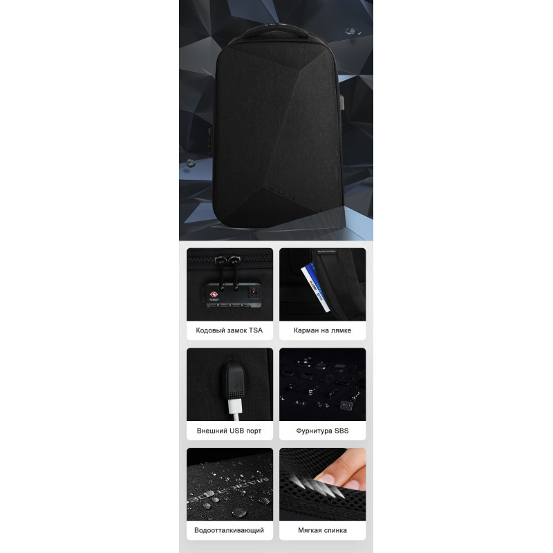 Особенности рюкзака | Функциональный, Вместительный, Карман на лямке, Карман на спинке, Кодовый замок |