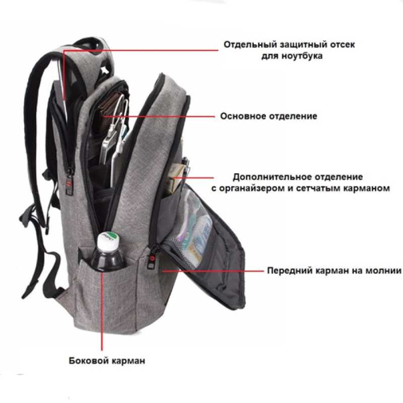 Описание товара: | Городской рюкзак Tigernu с отделением для ноутбука. Модель выполнена из прочного влагоотталкивающего материала, устойчив к порезам и разрывам. Рюкзак отлично подойдет для офиса, учебы, городских прогулок и путешествий. |