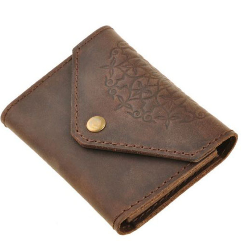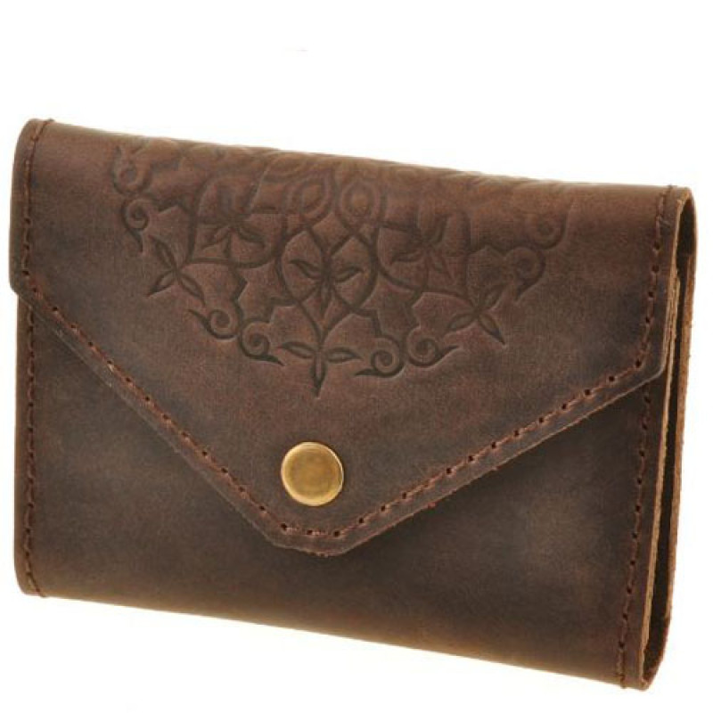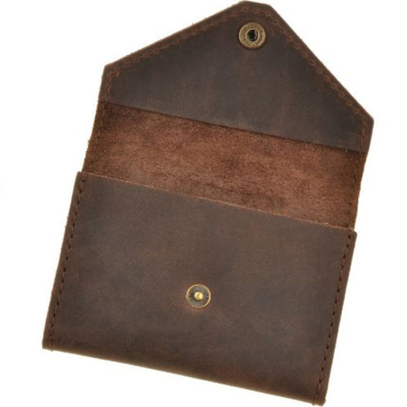 Кейс выполнен полностью вручную из высококачественной кожи, закрывается на кнопку, внутреннее пространство разделено на три отделения. Карточки доставать удобно благодаря эффекту гармошки - все сразу на виду после открытия.