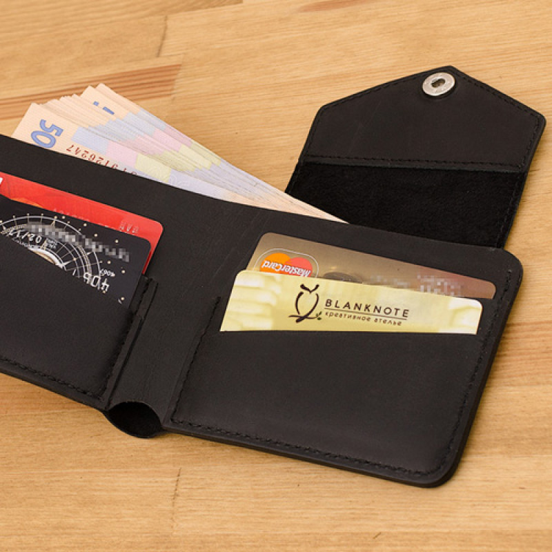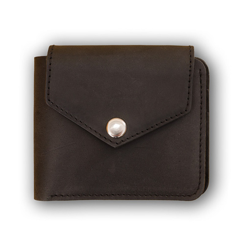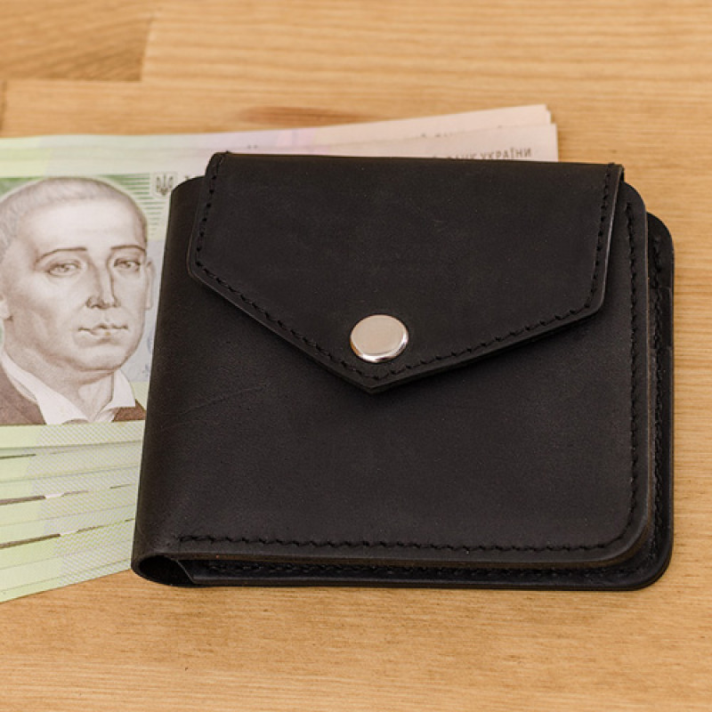 Классическая модель - стильное компактное портмоне с небольшим отделением для монет. Внутри есть одно отделение для купюр и 4 отделения для кредитных карт и визиток. Портмоне закрывается на клапан который формирует небольшую монетницу, закрывающуюся на кнопку с внешней стороны изделия. Подходит для любых купюр, в том числе - для евро и долларов. Сделано полностью вручную в нашей мастерской в Киеве. Натуральная кожа с винтажным эффектом.