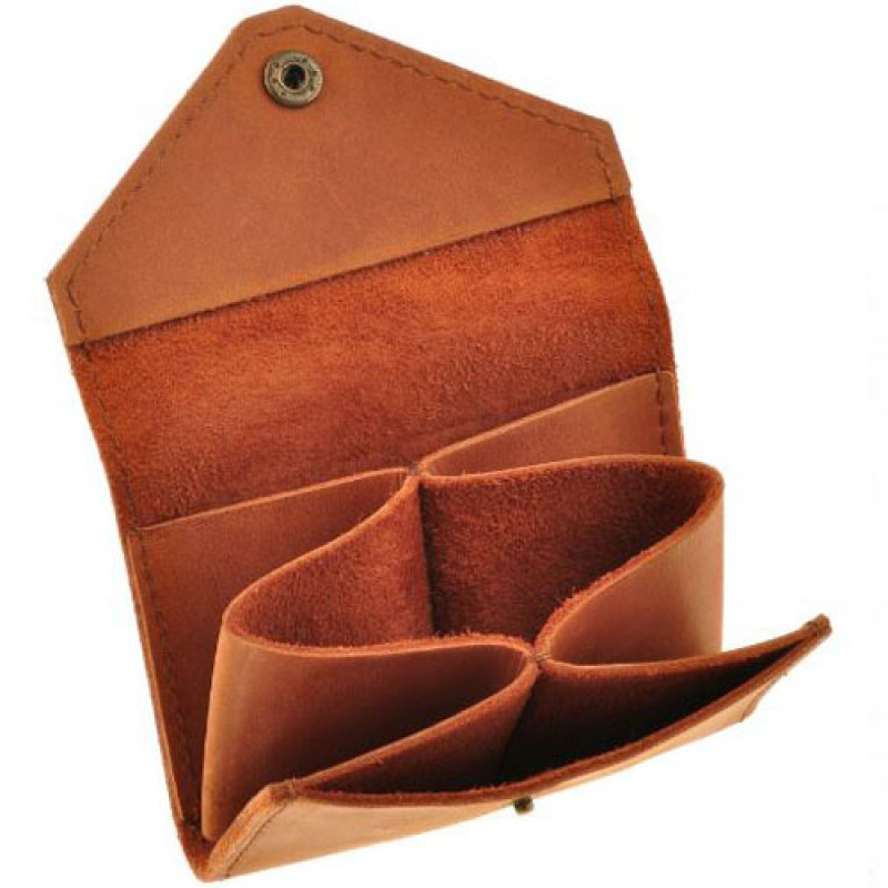 Кейс выполнен полностью вручную из высококачественной кожи, закрывается на кнопку, внутреннее пространство разделено на три отделения. Карточки доставать удобно благодаря эффекту гармошки - все сразу на виду после открытия.