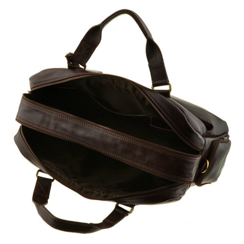 Стильная мужская сумка из натуральной кожи коричневого цвета с коричневыми ручками. В сумке два основных отдела на молнии, органайзер и карман на молнии. Снаружи впереди два вместительных кармана на молнии. Сзади карман на молнии во всю ширину сумки. Также имеются боковые карманы на молнии. В комплекте ремень через плечо регулируемый по длине.