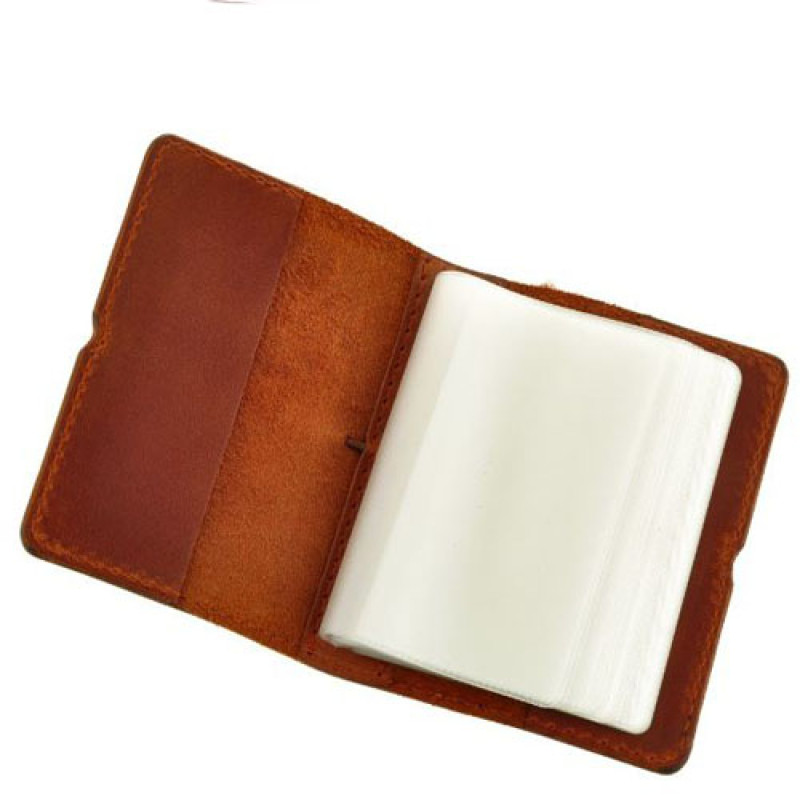 Это компактный и очень вместительный аксессуар для хранения ваших карточек. Достоинства - лаконичный дизайн, натуральная кожа, 20 пластиковых отделений для карточек (+2 дополнительных кармашка). Он очень удобен в использовании, так как выполнен в виде книжечки - пролистали и быстро нашли нужную страничку, не нужно пересматривать все карточки. Книжечка надежно укреплена резинкой, так что можете не боятся, что все откроется.