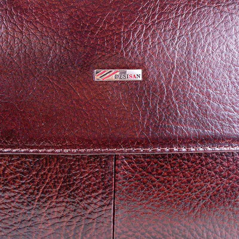 Кожаный мужской портфель коричневый с красивым бордовым оттенком. Портфель закрывается на клапан с магнитными кнопками. Внутри прорезной карман на молнии, органайзер, накладной карман, отделений для ноутбука. Снаружи на тыльной стороне портфеля есть прорезной карман на молнии.