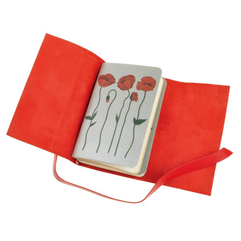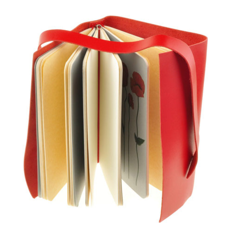 Исполнен в интересном форм-факторе: не классический книжный переплет, а так называемый "софт-бук", т.е. прикрепленные к цельному куску кожи несколько тетрадей. В качестве обложки - высококачественный нубук орехового цвета. Внутри - классический блокнот, разделенный на три съемные тетради.
