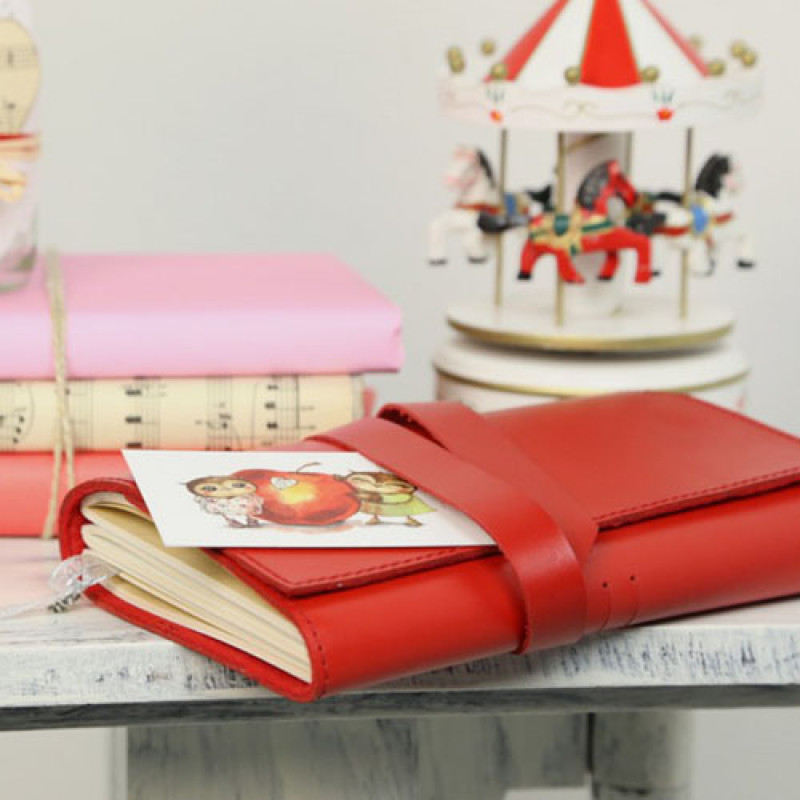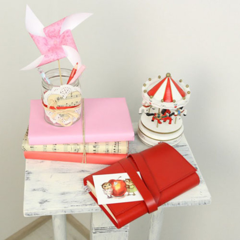 Также каждая тетрадка посередине разграничена вертикальным разделителем, насыщенно красного цвета. На нём удобно подписать раздел для удобства поиска нужной записи.