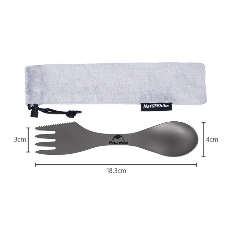 Сверхлегкий и прочный комбинированный набор ложка-вилка-нож 3-в-1 Naturehike Titanium Three-in-one. |