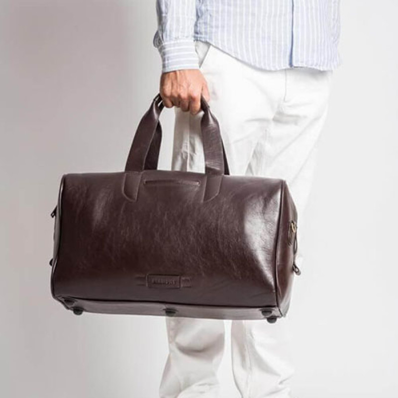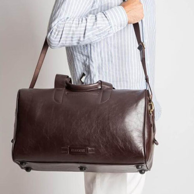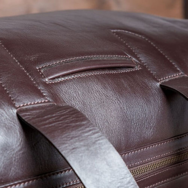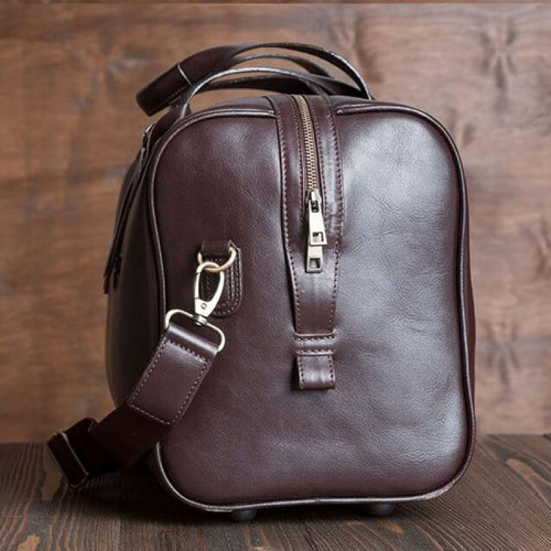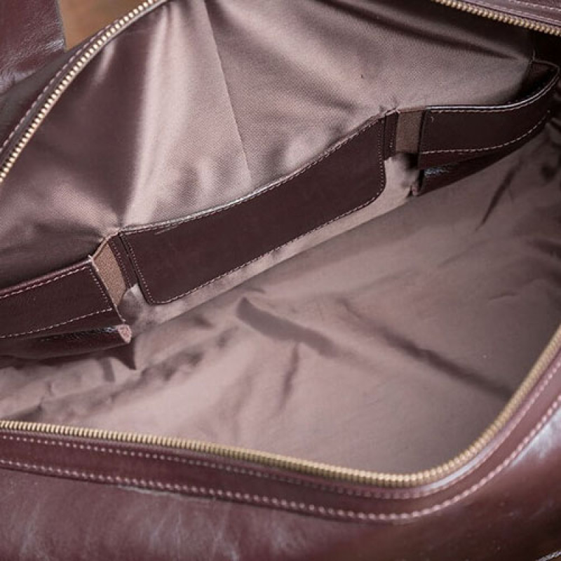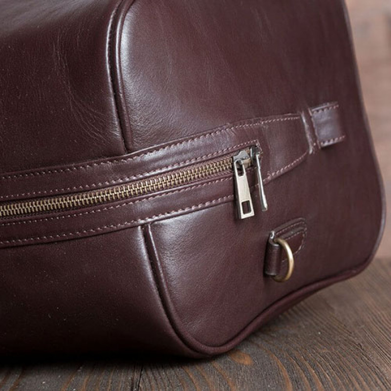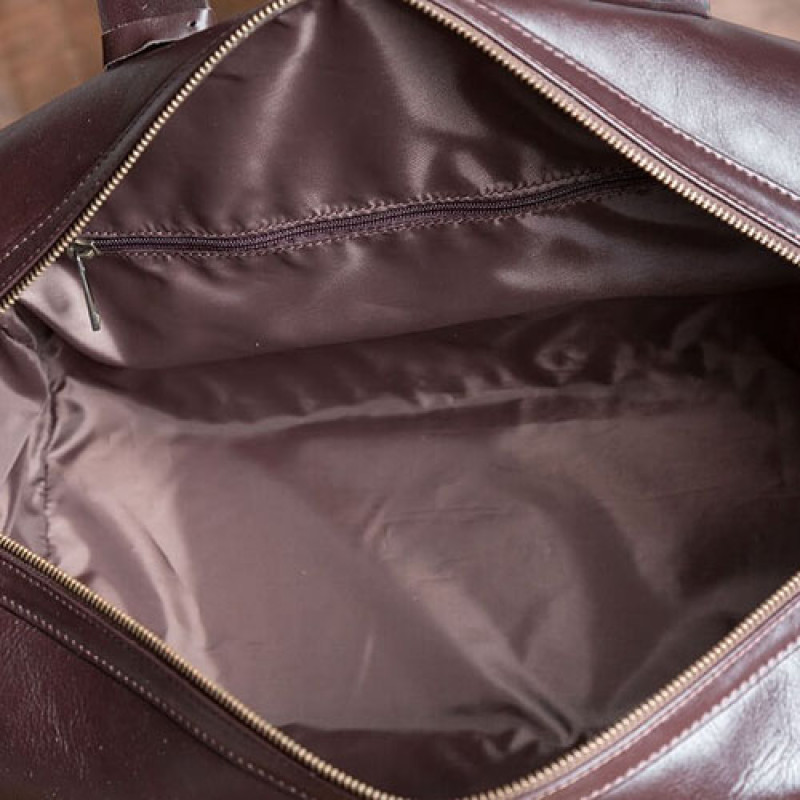 Стильная дорожная сумка для командировок и путешествий. Сумка выполнена из мягкой телячьей кожи коричневого цвета. В сумке одно большое отделение, внутри органайзер и накладной карман на молнии. Качественная металлическая фурнитура и крепкие молнии. В комплекте ремень на плече - регулируется по длине.