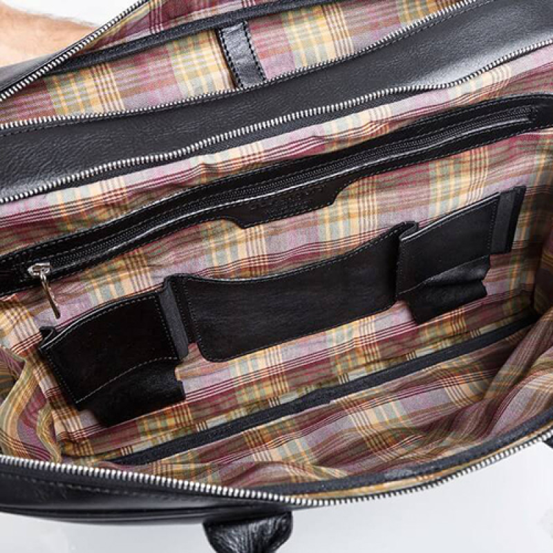 Мужская деловая сумка Blamont из натуральной телячьей кожи черного цвета. В сумке два основных отделения на молнии, органайзер для канцелярии и карманы для мобильного телефона и пластиковых карт. Снаружи два прорезных кармана на молнии, на лицевой и на тыльной стороне.