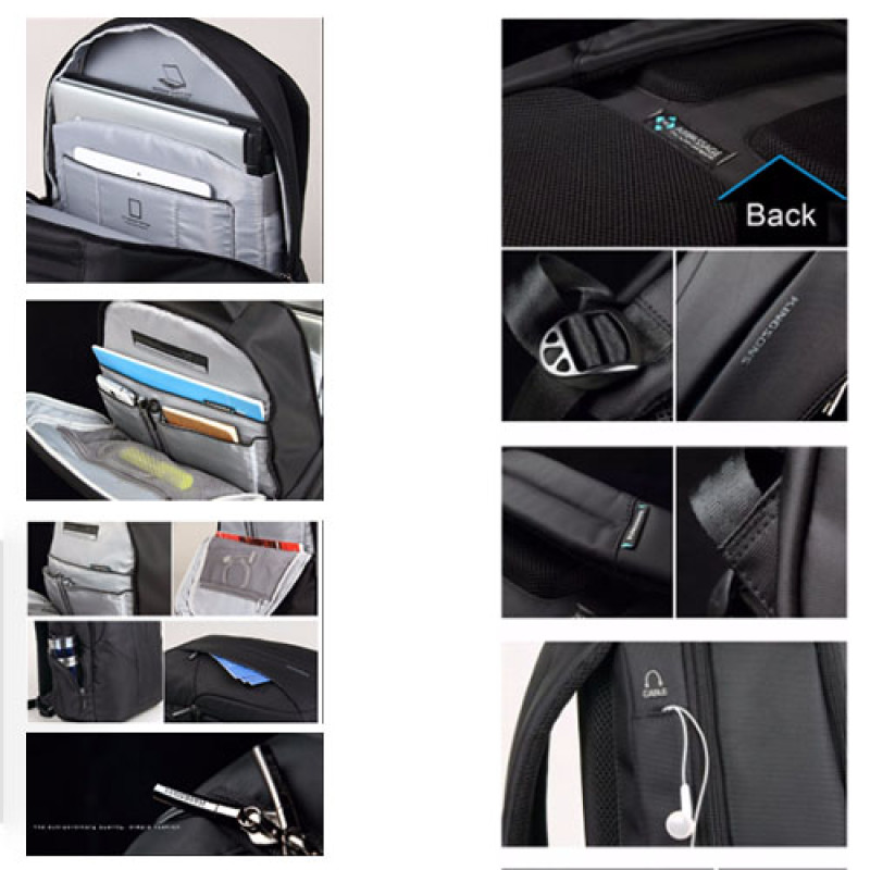 Внутренняя организация: | Два основных отделения, скрытое отделение для документов спереди, боковые карманы на молнии, выход для наушников и отделение для ноутбука 15,6 дюйма |