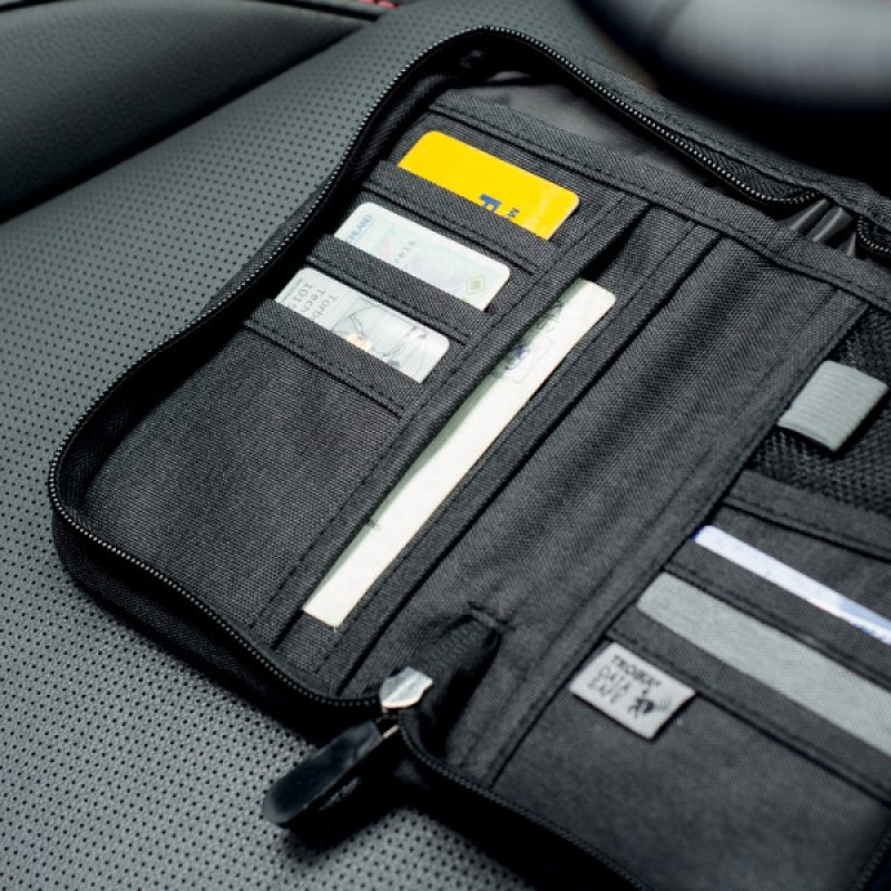 Кейс для транспортной документации, который идеально подходит для хранения талона транспортного средства и проездных документов. Благодаря удобному пространству для хранения, отделения для банковских, клубных, сервисных и топливных карт и т.д. Общее количество карманов - 10. Органайзер оснащен защитой от считывания для карт с чипами RFID. |