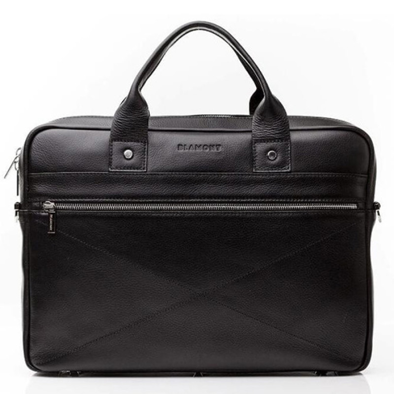 Оригинальная мужская сумка Blamont из натуральной кожи черного цвета. В сумке одно отделение на молнии, органайзер и карман на молнии, отдел для ноутбука диагональю до 16 дюймов. Снаружи на лицевой стороне карман на молнии. С тыльной стороны карман на молнии во всю ширину сумки. В комплекте ремень через плечо регулируемый по длине.