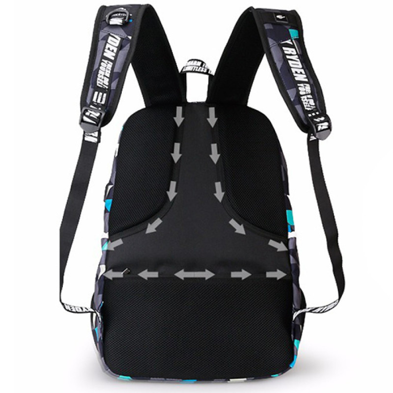 Описание товара: | Оригинальный мужской рюкзак 23 литра синий, с USB входом. Мягкая дышащая спинка и широкие регулируемые шлейки. |