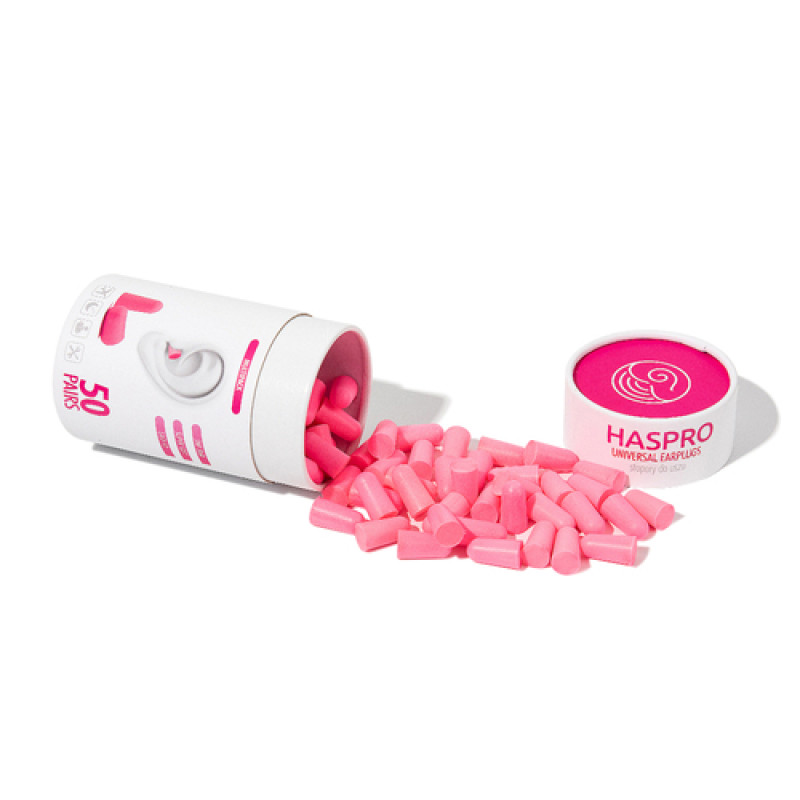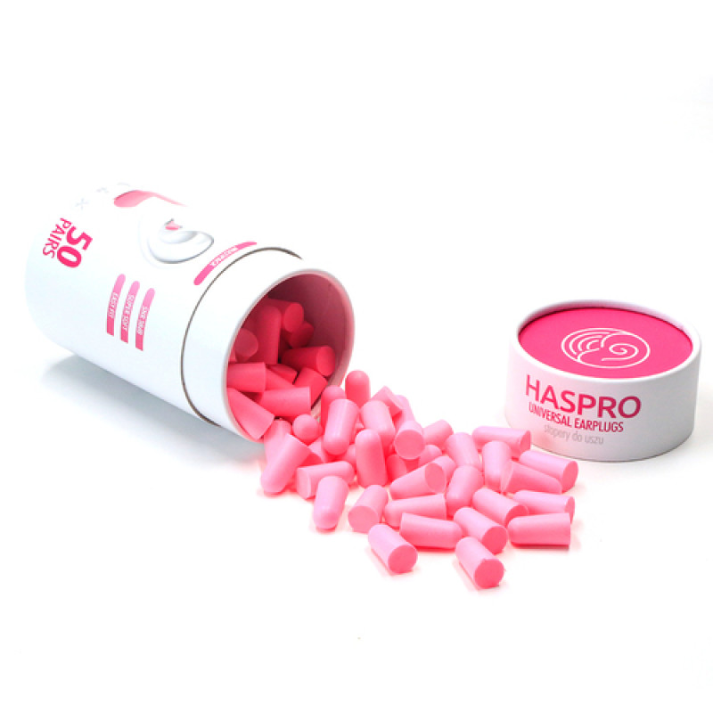 Упаковка HASPRO Tube50 включает 50 пар берушей из сверхмягкого пенополиуретана с высоким уровнем снижения шума 38 дБ упакованных в тубу из плотного картона, без индивидуальной упаковки.