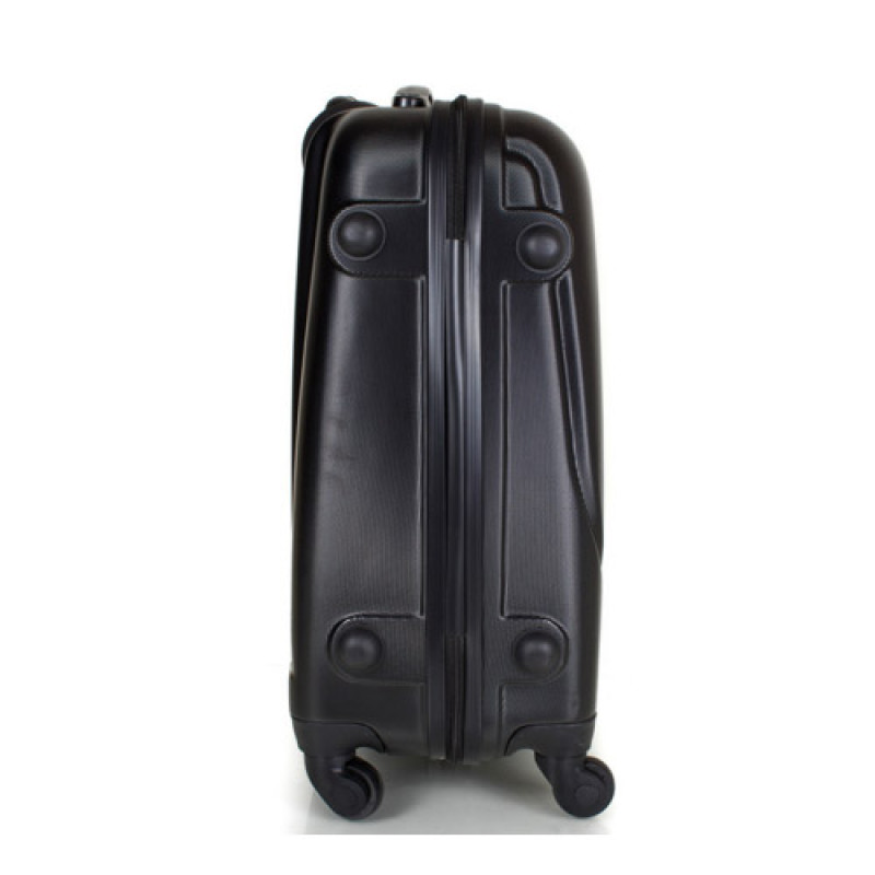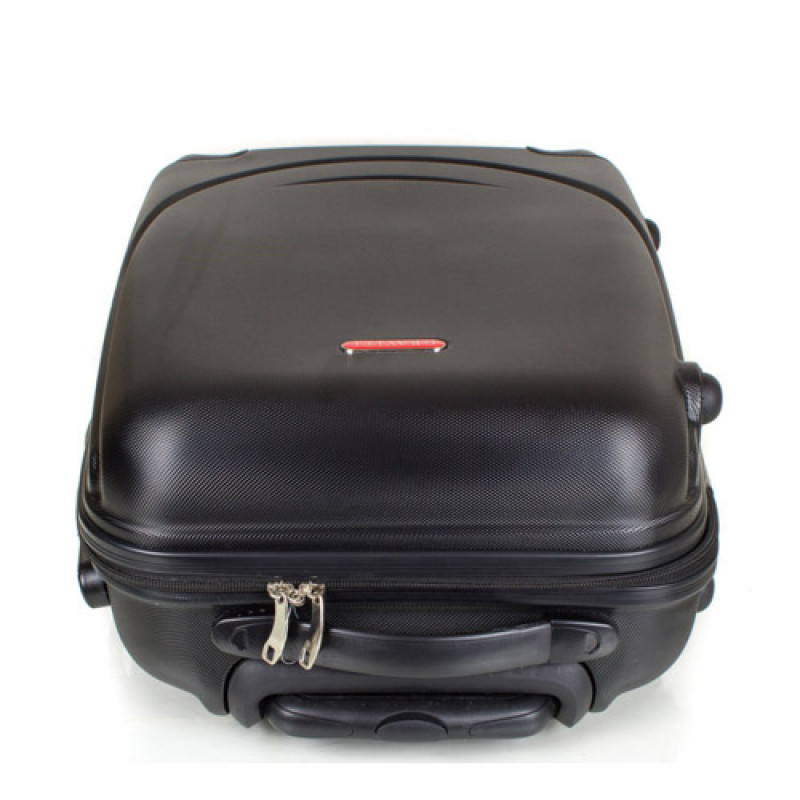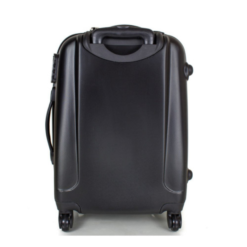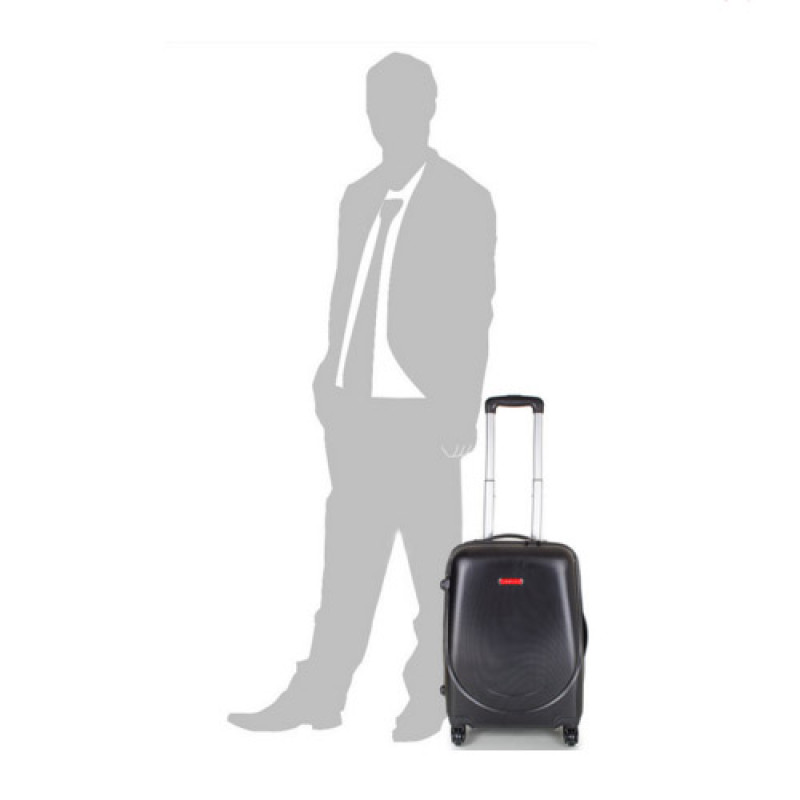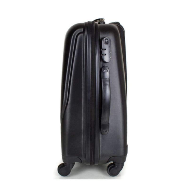 Пластиковый чемодан на 4-х колесах. Колеса крутятся на 360°, что облегчает управление чемоданом, при транспортировке. Чемодан закрывается на молнию с двумя собачками. Имеется кодовый замок, также есть возможность применения дополнительного навесного замка. Для переноса чемодан имеет две ручки и выдвижную ручку для перевозки. Выдвижная ручка выполнена из прочного, легкого алюминия. Ручка имеет два уровня подъема, и фиксатором. Чемодан имеет два основных отделения. Имеются эластичные крепления для одежды, и прорезной карман-сетка на молнии.