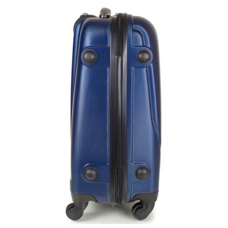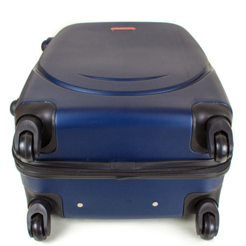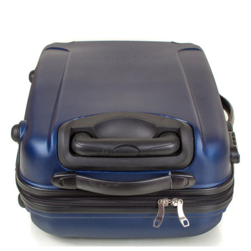 Пластиковый чемодан на 4-х колесах. Колеса крутятся на 360°, что облегчает управление чемоданом, при транспортировке. Чемодан закрывается на молнию с двумя собачками. Имеется кодовый замок, также есть возможность применения дополнительного навесного замка. Для переноса чемодан имеет две ручки и выдвижную ручку для перевозки. Выдвижная ручка выполнена из прочного, легкого алюминия. Ручка имеет два уровня подъема, и фиксатором. Чемодан имеет два основных отделения. Имеются эластичные крепления для одежды, и прорезной карман-сетка на молнии.