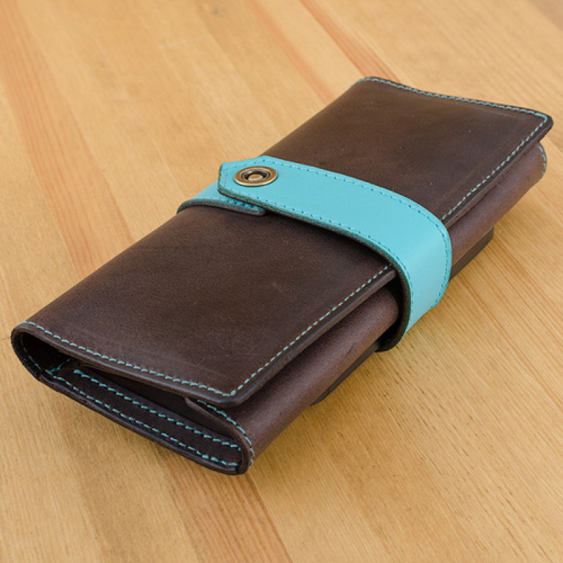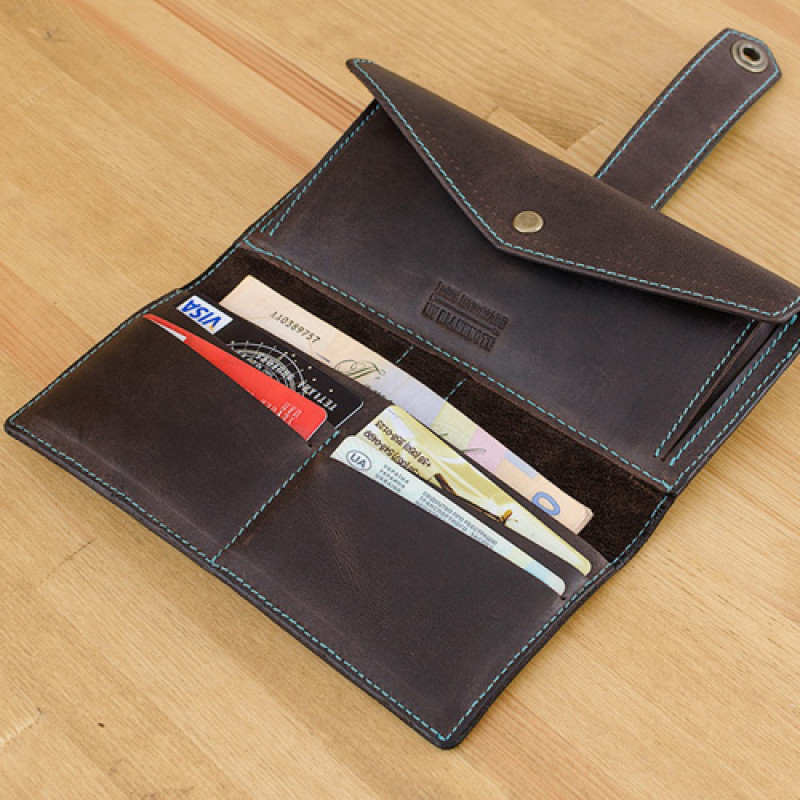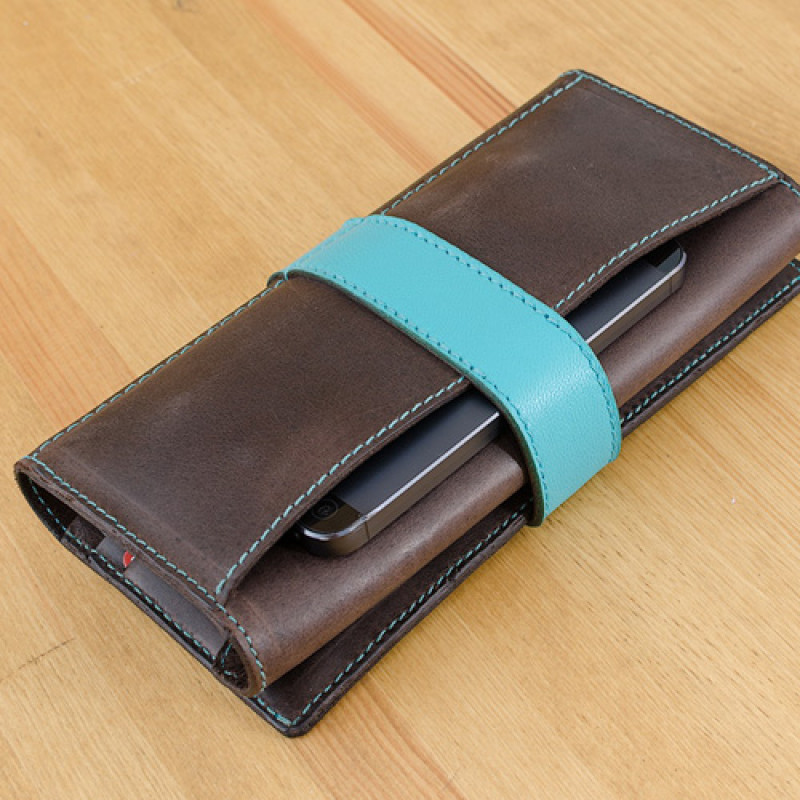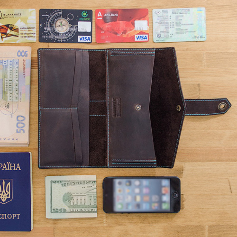 Уникальная по удобству и функциональности модель - совмещающая в себе портмоне, кошелек и мини-клатч! Предусмотрено место для карточек, небольших мелочей, купюр, монет и мобильного телефона. Подходит для любых купюр, в том числе - для евро и долларов. Сделано полностью вручную в нашей мастерской в Киеве. Натуральная кожа, металлическая фурнитура.