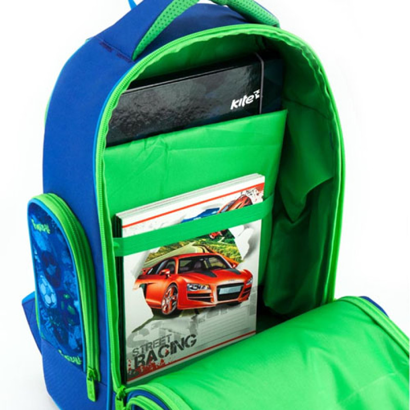 Описание товара: | Синий школьный рюкзак для мальчика Kite Football имеет яркую подкладку и удобные разделители, которые систематизируют школьные вещи ребенка. |