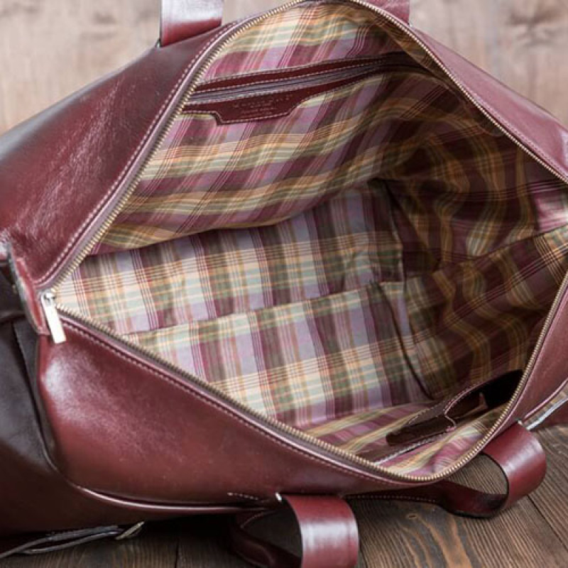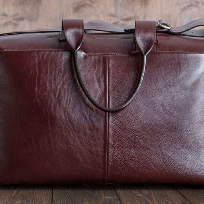 Мужская дорожная сумка для командировок и путешествий. Сумка выполнена из мягкой телячьей кожи коричневого цвета. В сумке одно большое отделение, внутри органайзер и накладной карман на молнии. В комплекте ремень на плече - регулируется по длине.