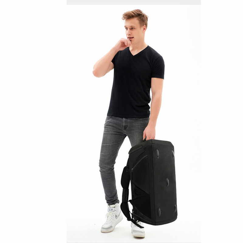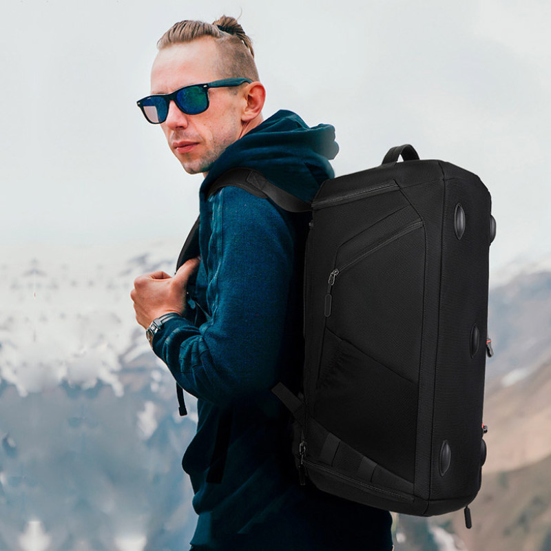 Сумка будет полезна любителям активного отдыха и путешествий. Она может носиться тремя способами: за две ручки вручную, перекинутой через плечо при помощи длинной отстегивающейся лямки или как рюкзак на плечах |