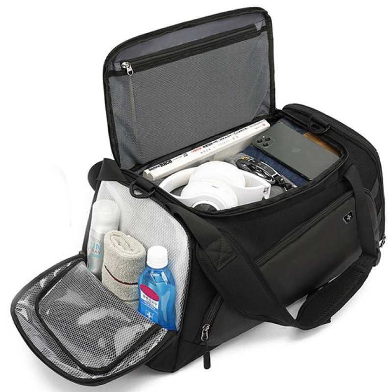 Вместимость сумки составляет 45 литров, обеспечивая достаточно места для размещения вещей. Множество отделений, карманов и сеток позволяют эффективно упаковать содержимое и создать порядок в сумке. |