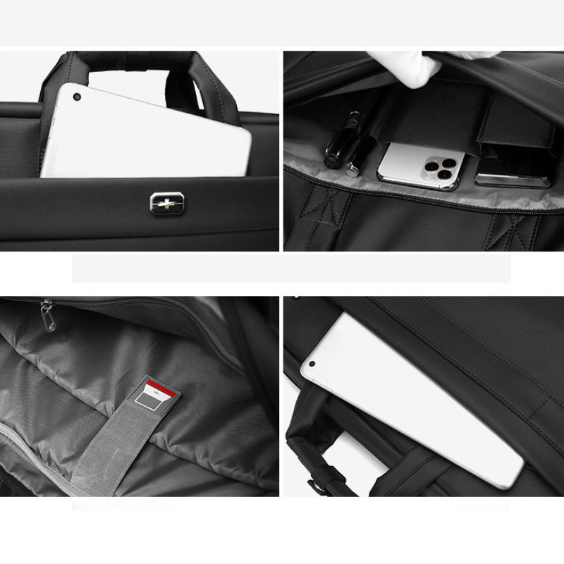 | Отделение для ноутбука. Отделение с органайзером для канцелярии. Карман на фронтальной части. Карман на молнии на спинке сумки |