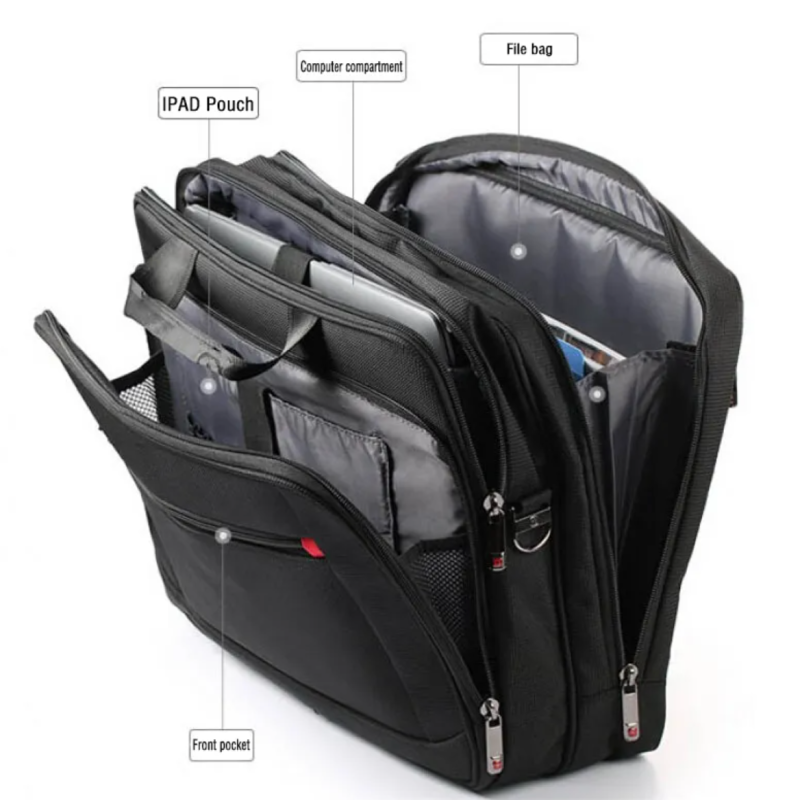 | Большое отделение для вещей. Отделение для ноутбука. Отделение с органайзером для канцелярии. Карман на фронтальной части. Карман на молнии на спинке сумки |