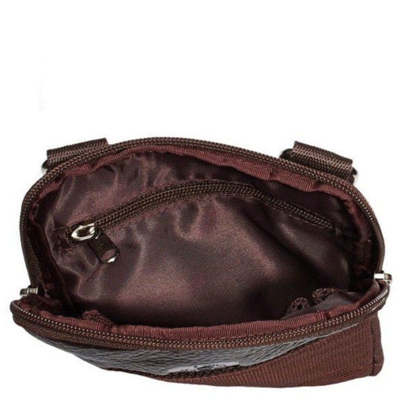 Эта небольшая сумка сверху закрывается на молнию. Длинный, надежный, крепкий плечевой ремень. Внутри карман на молнии, отделение для ручки и карабин для брелока.