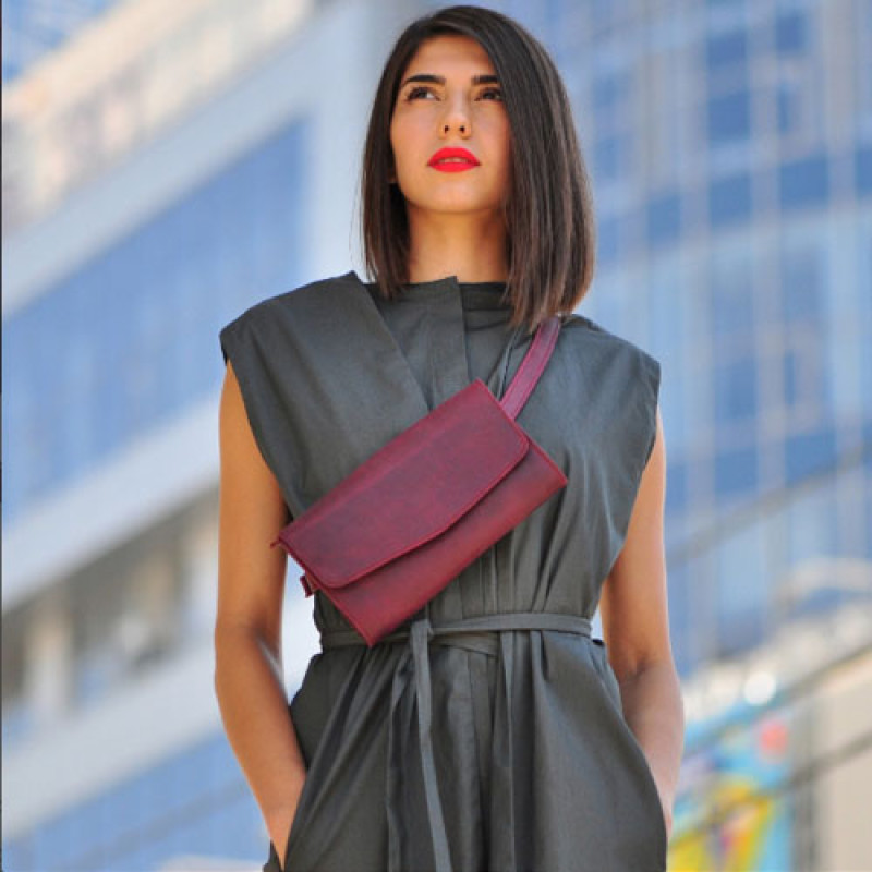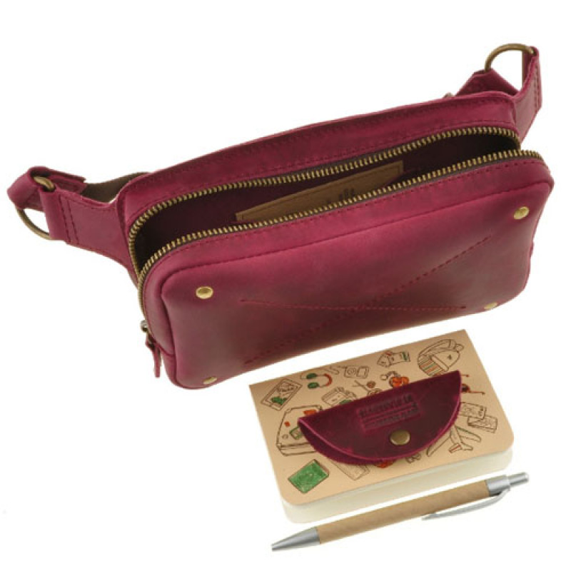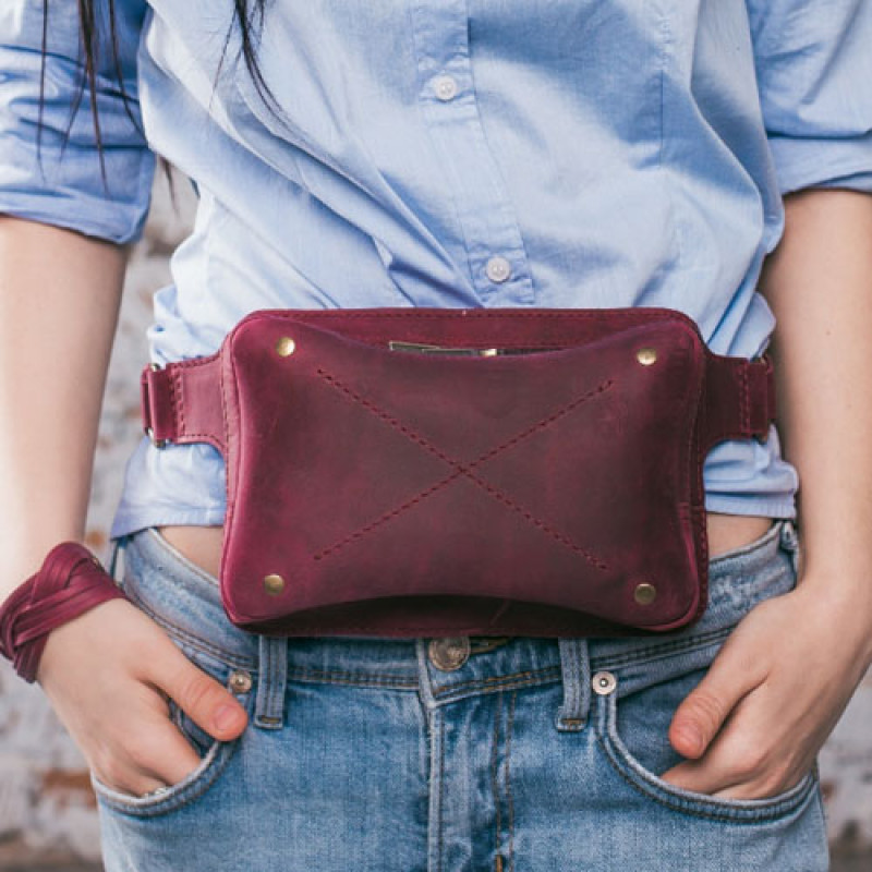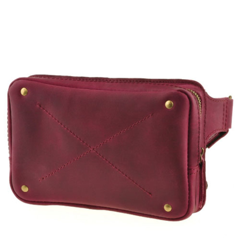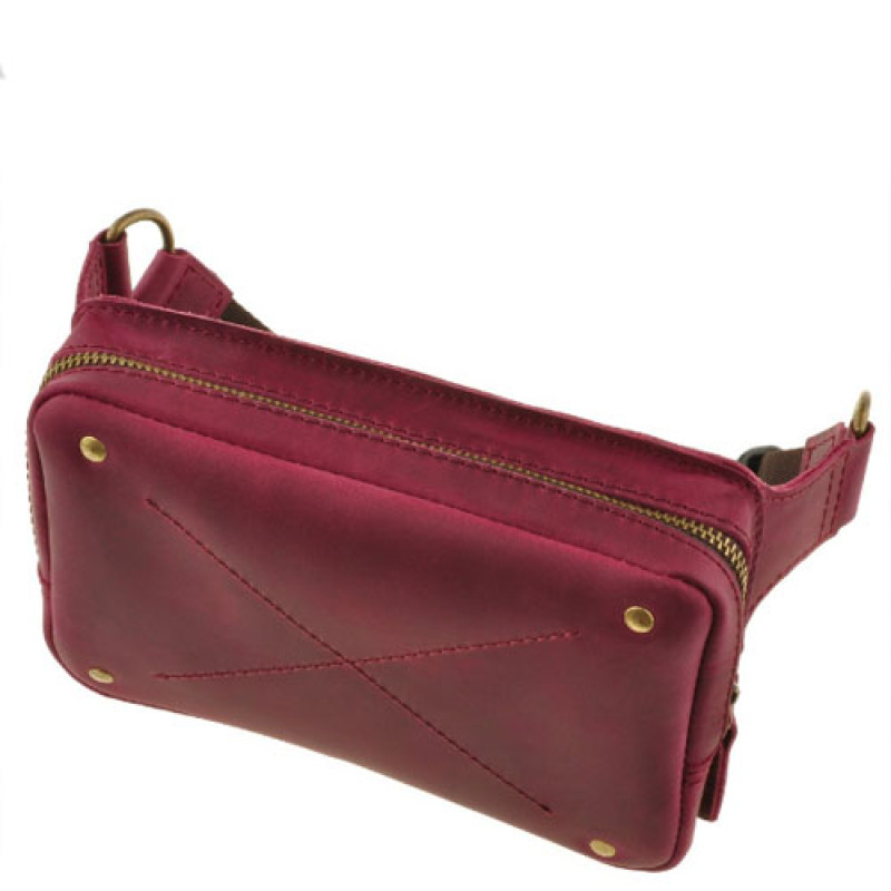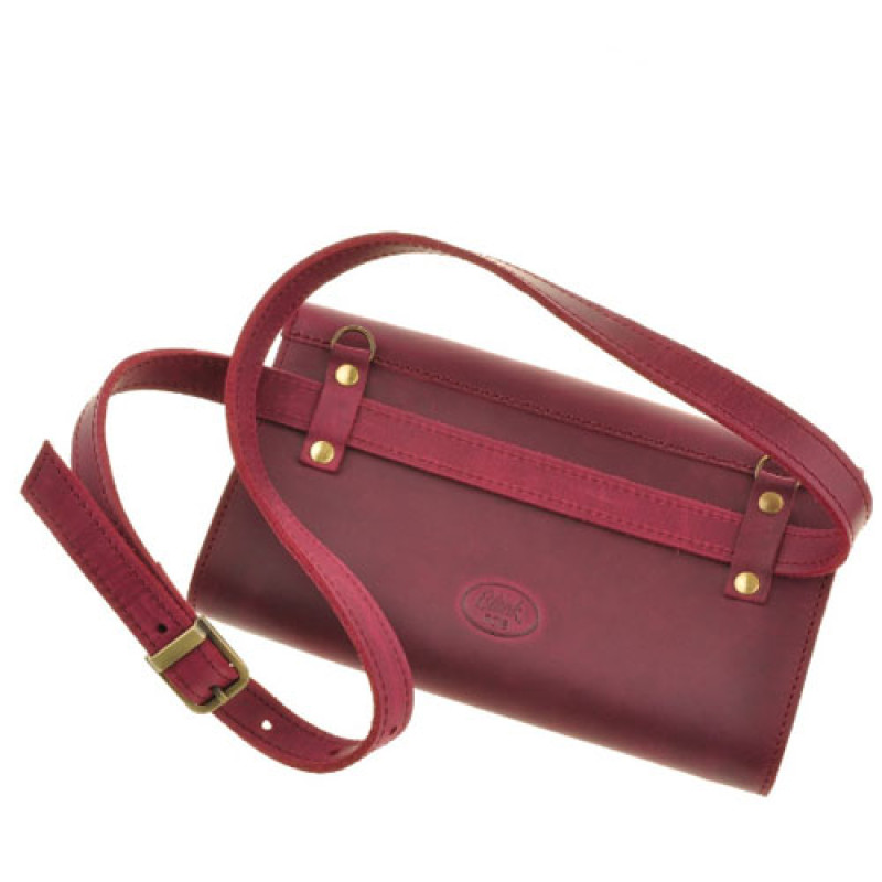 Бордовая практичная сумка небольшого размера от Blank Note, которая носится на поясе или бедрах отлично подойдет как мужчине, так и женщине. А еще эту сумку удобно носить на груди благодаря полукольцам на ремне сумки.