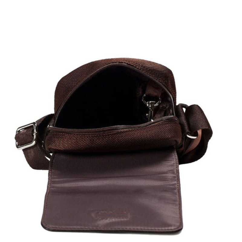 Сумка из нейлона и натуральной кожи Bugatti коричневого цвета предназначена для транспортировки малогабаритных вещей и документов, телефона, фотоаппарата, портмоне и.т.д. Сумка станет практичным и модным подарком современному мужчине.